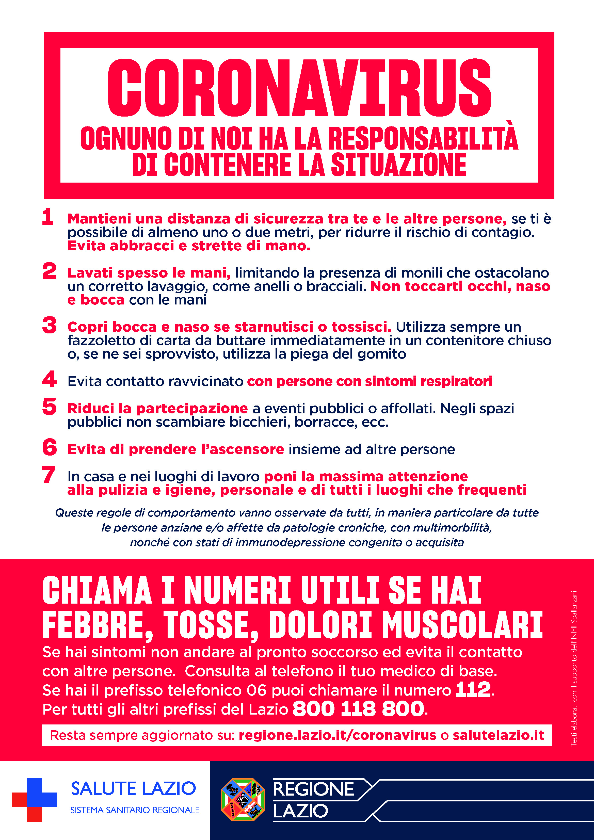 La Regione Lazio ha promulgato una nuova grafica che contiene una serie di regole che tutti siamo chiamati a rispettare per contenere la diffusione del virus.