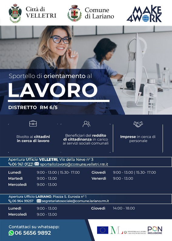 Ufficio Servizi Sociali: Attivazione Sportello Lavoro
