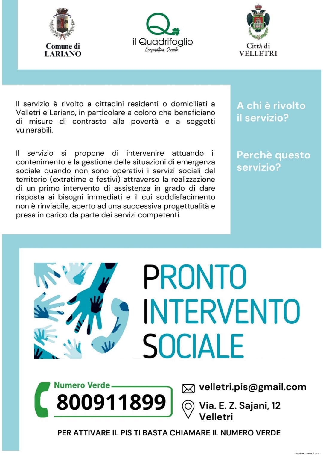 Ufficio Servizi Sociali - Attivazione Pronto Intervento Sociale