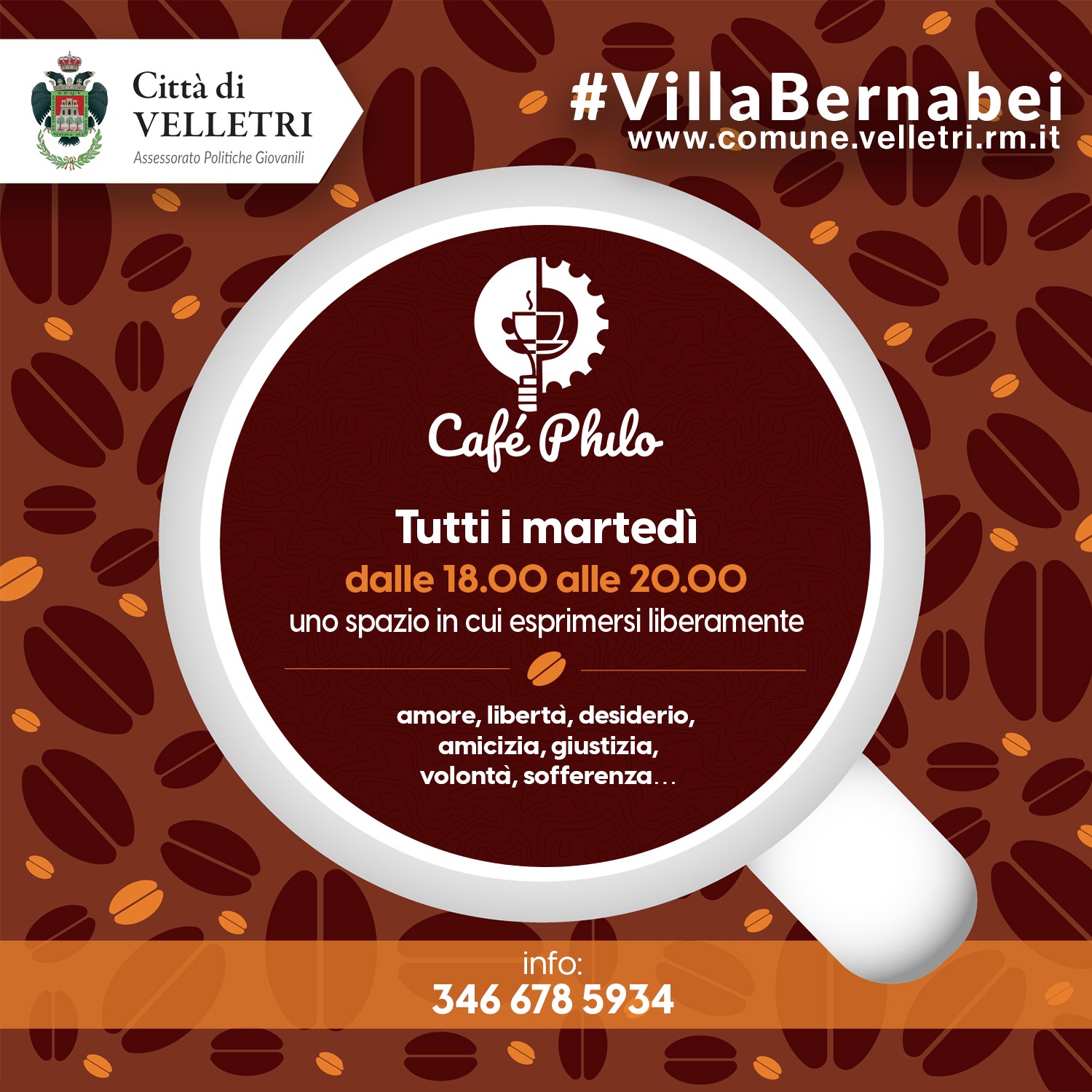 L'Assessorato alle Politiche Giovanili comunica che dal 21 marzo 2023 a Villa Bernabei si terranno le attività di Cafè Philo, tutti i martedì dalle 18:00 alle 20:00.