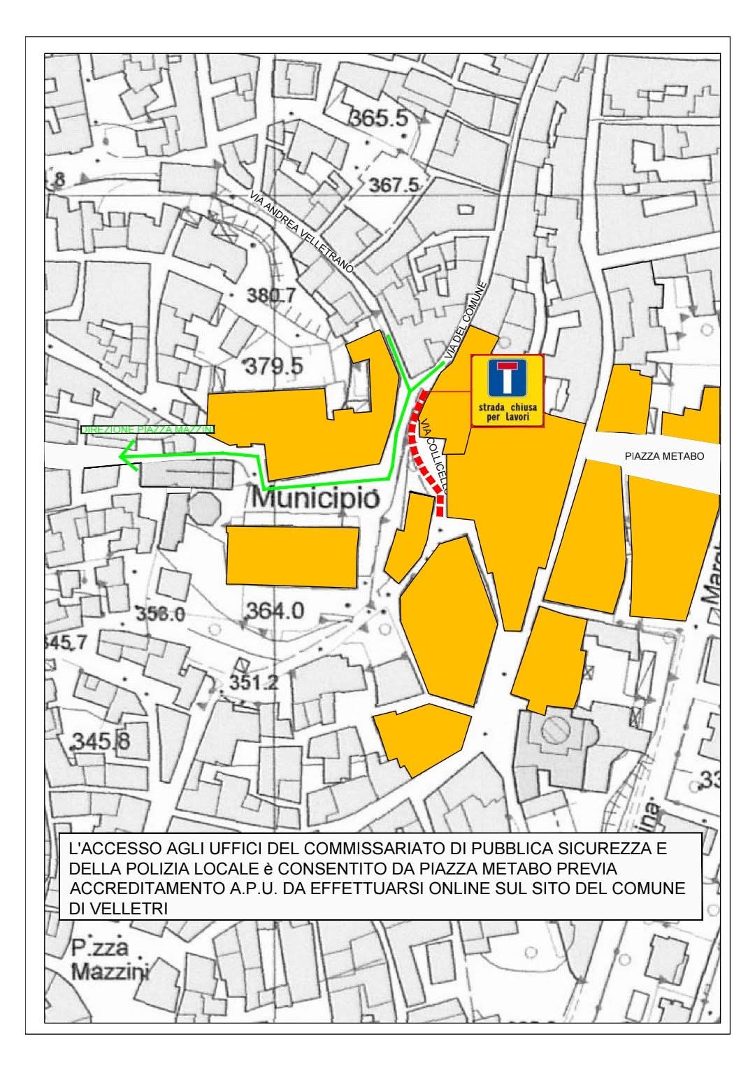 Per coloro che dovranno recarsi presso il Comando di Polizia Locale o il Commissariato situati in zona San Martino, è previsto un accesso speciale in A.P.U. Gli interessati potranno accedere transitando da piazza Metabo, lungo Corso della Repubblica, comunicando entro 72 ore dal passaggio la targa del veicolo al Comando di Polizia Locale per l'inserimento nel sistema di monitoraggio delle targhe nell’A.P.U.